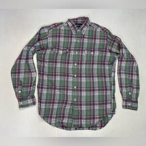 Polo Ralph Lauren Button Up Shirt Men Medium Pink Green Long Sleeve Pockets