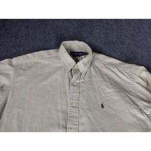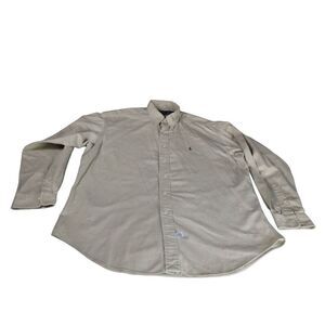 Polo Ralph Lauren Button Up Shirt Men Sz L Khaki Cotton Long Sleeve Workwear