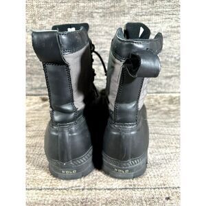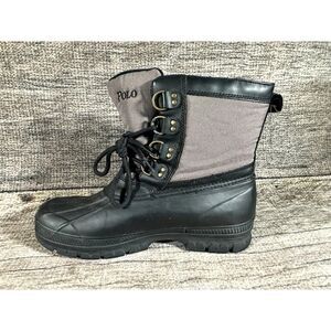Polo Ralph Lauren Crestwick Duck Boot Black Mens 12 D Rain Snow Hunting. Size 12 D. In good used condition. Has light wear as shown. Lace up boots. Has canvas grey material on the sides. Lots of life to go on these boot!