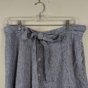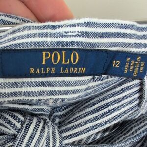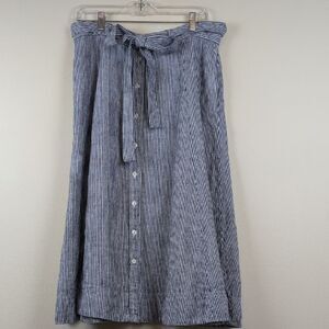 Polo Ralph Lauren Linen Stripe Ribbon Flare Button Front Midi Skirt Size 12
