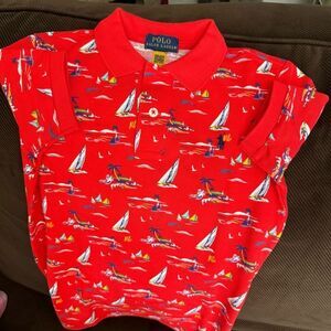 Polo Ralph Lauren Red Nautical Polo Shirt Boys Size 5 (No 🏷️ Boats,Palms,Islands