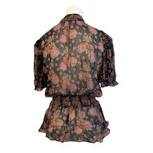 Polo Ralph Lauren Small Floral Ruffled Sheer Peplum Top Elastic Waist Blouse