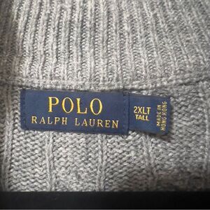 Polo Ralph Lauren Sweater Men's Gray Cable Knit 100% Tussan Silk Quarter Zip Pullover. Size 2XLT Tall.