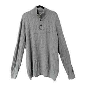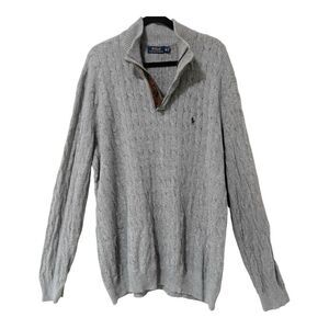 Polo Ralph Lauren Sweater Men's Gray Cable Knit Tussan Silk Quarter Zip Sz 2XLT
