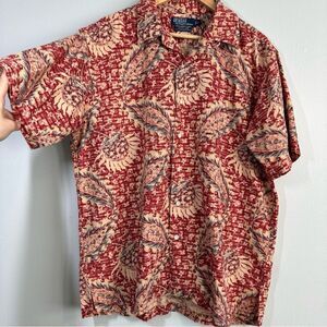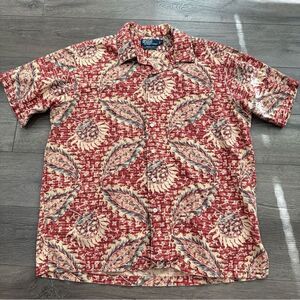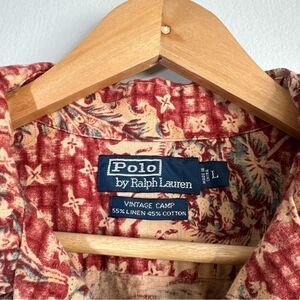 Polo Ralph Lauren Vintage Camp Shirt Men's L Linen Blend Pineapple Floral Red