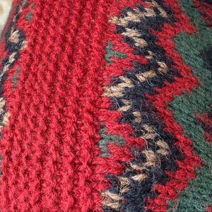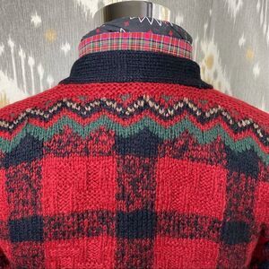 Polo Ralph Lauren Vintage Hand Knit Red & Black Multi Wool V-Neck L/S Sweater