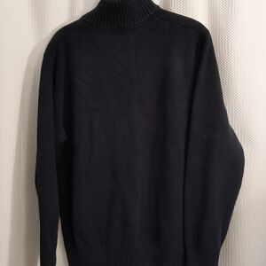 Classic Navy blue zip-up sweater. Features red embroidered logo. Ribbed collar and cuffs. Pit to pit approx. 22 length 25 in. Excellent pre-owned condition.