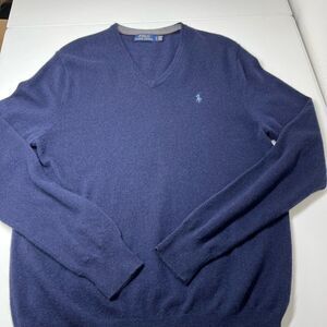 Polo Ralph Lauren Washable Wool V-Neck Sweater size L6 Hunter Navy NWOT