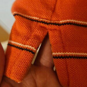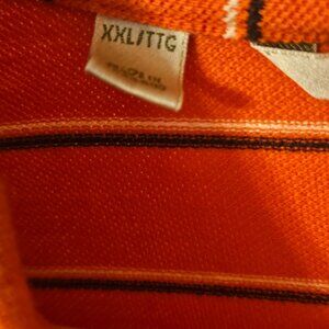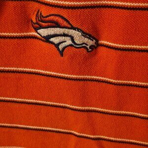 Denver Broncos striped Polo Shirt, open weave with side slits on each side. Size XXL, measures 30.5"; 24.5" pit to pit and 15" sleeves. Cutter & Buck brand.
