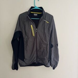Elevate your performance with this Ralph Lauren jacket. Features a sleek gray and black design with a pop of yellow. Ideal for active wear.
