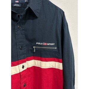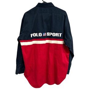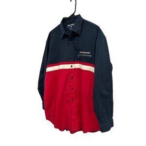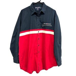 Polo Sport Ralph Lauren Long Sleeve Button Down Shirt L Cotton Red Navy
