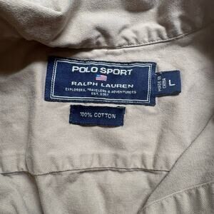 Polo Sport tan American flag button up long sleeve collar shirt SIZE L