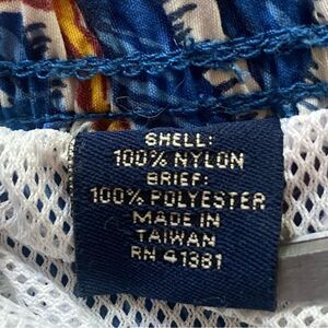 Polo Sport Ralph Lauren Vintage Swim Trunks Size Medium. Excellent pre-owned condition. Blue tone with brown tone surfers, paddle boat theme. Elastic waistband with drawstring front. 2 front pockets. One back pocket with hook and loop closure. White mesh lining. Measures approximately waist 30", inseam 7.5", rise 12.5".