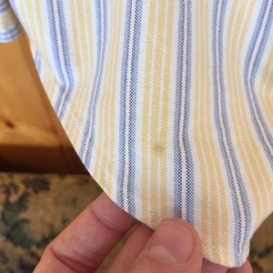Polo button down size small classic fit. Great condition save for stain at bottom of shirt, indicated in last photo