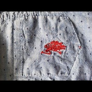 Polo button down with chest pocket. 4T. 60% cotton 40% polyester. Blue with polka dots