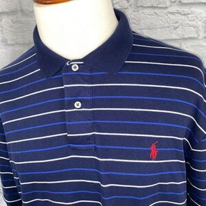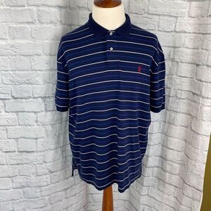 Polo by Ralph Lauren 100% cotton 2 button collar shirt sleeve stripe polo navy blue sz XXL men