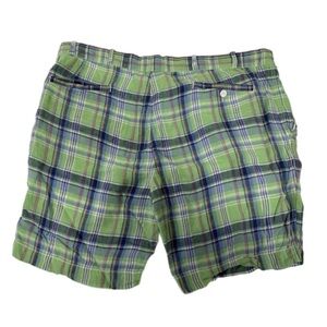 Polo by Ralph Lauren 100% Linen Skater Golf Shorts Green Plaid Plus Size M42