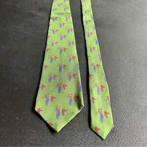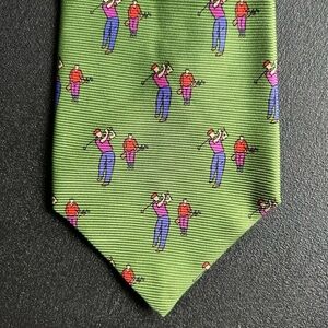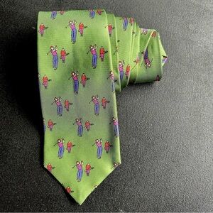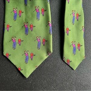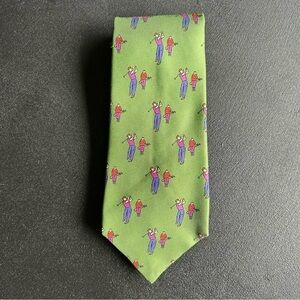 Polo by Ralph Lauren 100% Silk Handmade Tie, Green with Golfers