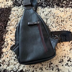Sleek black belt bag. Features adjustable strap. Polo logo on front. Perfect for on-the-go style. Lots of pockets and sections for organization. Leather for durability.