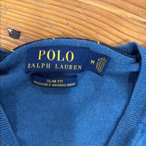 Polo by Ralph Lauren Blue V-Neck Slim Sweater washable merino wool size medium
