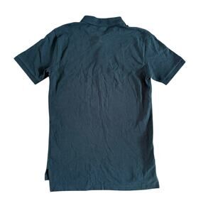 Short sleeve, two-button placket and ribbed collar. Fabric has normal light wear and minor wrinkling from storage, but no holes, rips, or major stains noticed.