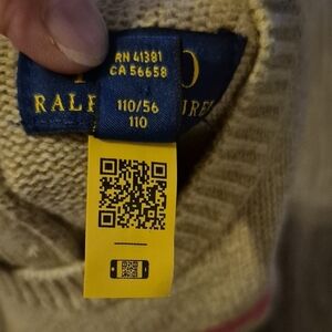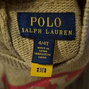 Polo by Ralph Lauren Childrens Beige Sweater with Red Logo Sz 4/4T