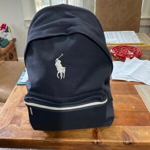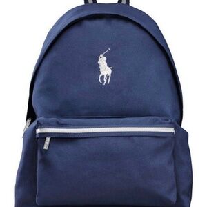 Elegant Polo by Ralph Lauren backpack in blue. Features spacious main compartment and front zip pocket. Iconic logo on front.