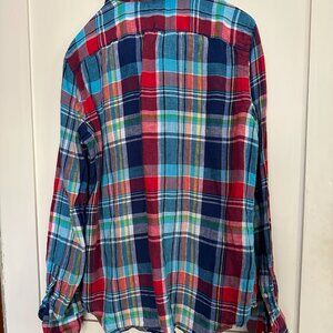 blue yellow and red checked shirt size M