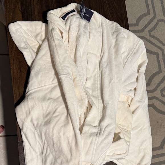 Luxurious cream robe by Polo Ralph Lauren. Soft and elegant. Ideal for relaxation.