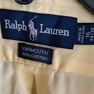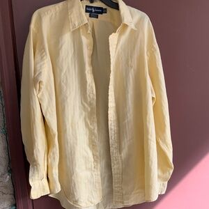 Gorgeous yellow linen-esque style Yarmouth 100% cotton Dress shirt by Ralph Lauren. Size 16, non-smoker, no pets