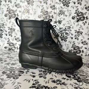 Polo by Ralph Lauren Ewan Duck Boot Black Leather Waterproof Big Boys Size 6