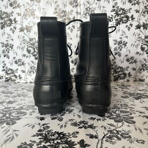 Black leather boots with Polo branding. Ideal for rain and snow.