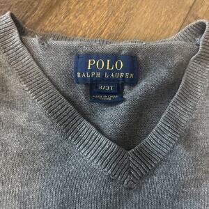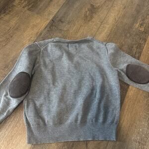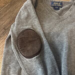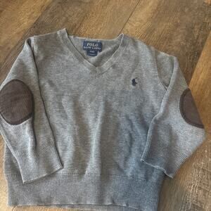 Stylish gray sweater with brown elbow patches. Features classic Polo logo. Perfect for kids.