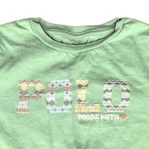 Comfortable and stylish size 6, short sleeve, crew neck Khaki green t-shirt for kids by Polo by Ralph Lauren. Featuring "POLO" in a stitch print and "Made With ❤️" in actual stitching. Perfect for everyday wear. 100% Cotton. Gently Loved. Excellent Condition!