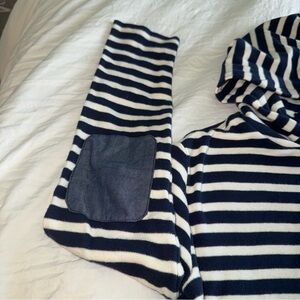 Chic striped hoodie for kids. Navy and white design. Comfortable and stylish.