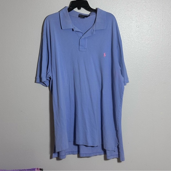 Elegant Ralph Lauren polo shirt. Made from 100% cotton. Features a soft lavender hue. Polo by Ralph Lauren Men Preppy Casual Polo Shirt in Light Blue size 2XLT Tall. Slightly used. Excellent condition. Smoke free home. No issues.