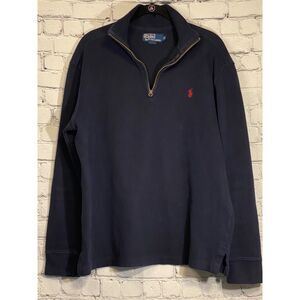 Polo by Ralph Lauren Men's 1/4 Zip Pullover Size M Navy Blue with Red Logo
