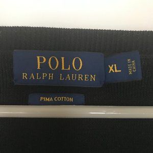 Men's Polo Ralph Lauren Black v neck sweater with purple logo on front left. Its 100% cotton and in excellent used shape, no snags or flaws.