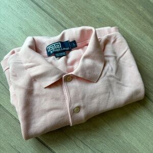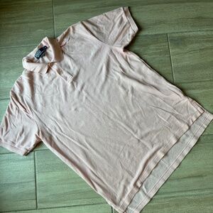 Ralph Lauren polo shirt, men’s large golf shirt, pink cotton polo, classic fit, preppy style, casual polo shirt, short sleeve collared shirt, Ralph Lauren men’s wear, country club style, iconic polo top.