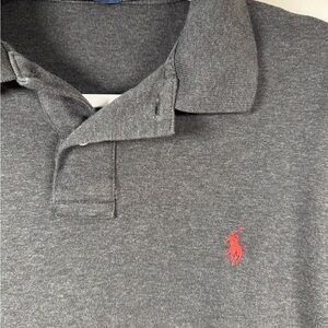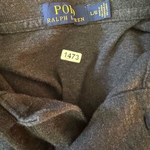 This Polo by Ralph Lauren Long Sleeve Shirt is used and in great used condition. It is a charcoal grey and size large. See pictures for condition. Great shirt!