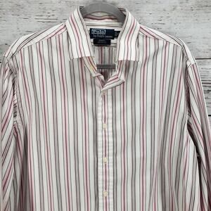 Polo by Ralph Lauren Men's Pink Striped Cotton Regent Custom Fit Shirt XL