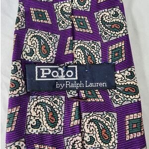 Polo by Ralph Lauren Men's Purple Paisley 100% Imported Silk Neck Tie, Handmade