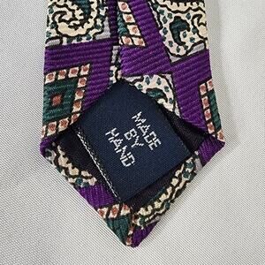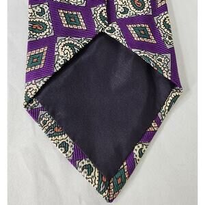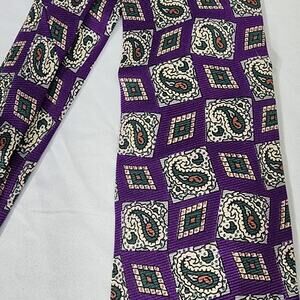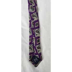 Jazz up your suit or collared shirt with this great color combo tie - featuring a dark purple background with square paisley designs throughout