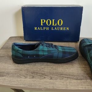 NEW w/box...Stylish tartan sneakers by Polo Ralph Lauren. Green and navy Tartan design. Ideal for casual wear. These look incredible! Size 12. Thanks for checking out the gear at Settrippin!