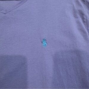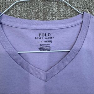 Elevate your casual wardrobe with this Polo by Ralph Lauren V-neck T-shirt. Crafted in a stylish purple hue, it's perfect for everyday wear. Experience comfort and style with this iconic brand.
