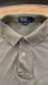 Ralph Lauren Polo men’s size XL knit polo. Shirt features 100% khaki cotton pique knit material; short sleeves with banded cuffs; 2 button collar front; and slate blue embroidered pony on left chest. Beautiful color combo! Tiny mend near bottom of buttons, and slight separation on fishtail seam (see pics). Very good used condition from a smoke free home. Refer to pictures for measurements.