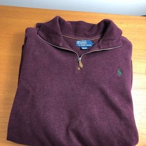 Polo by Ralph men's size XL quarter-zip neck sweater. I would call this color "wine". 100% cotton.