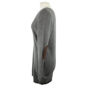 This Polo by Ralph Lauren gray tunic sweater in size large is a classic mix of sophistication and versatility. Made from 91% Merino Wool and 9% Cashmere with luxurious 100% lamb suede elbow patches, it’s lightweight, warm, and perfect for layering. Wear it as a tunic with leggings or a sweater dress with boots—the choice is yours!
