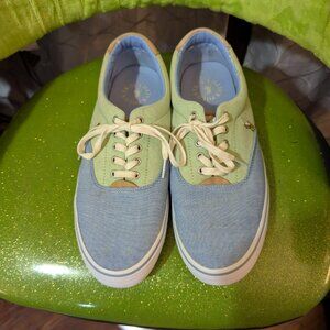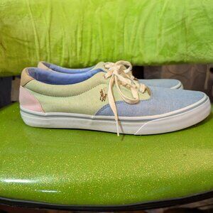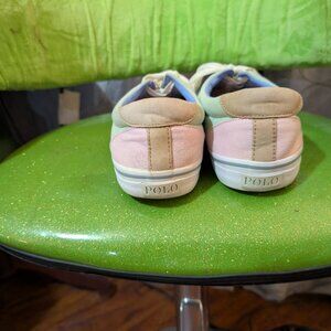 Stylish sneakers with a blend of pastel colors. Features iconic Polo logo. Comfortable and trendy design.