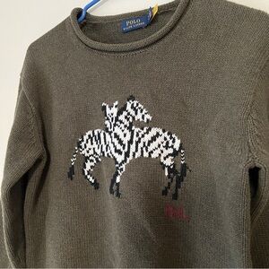 Polo by Ralph Lauren Olive Sweater with Zebra Design